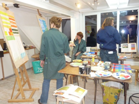 Basisvaardigheden als het mengen van kleur, compositie, vorm en restvorm,volume, perspectief komen altijd weer aan de orde indien nodig. Schildertechnieken worden inividueel of groepsgewijs aangereikt.