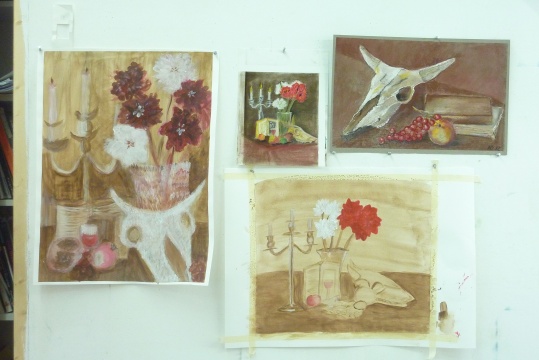 Doordat er een kleine groep is van max. 7 personen kan ik een programma op individueel niveau maken waardoor ik zowel beginners als gevorderden kan lesgeven. De wisselwerking is vaak interessant en soms kan het gebeuren dat iedereen toch met hetzelfde onderwerp bezig is maar dan op zijn eigen wijze. Ik maak vaak gebruik van een stilleven, foto's en het uitzicht, soms speciale tekenlessen of een specifieke schilderstechniek, de basisvaardigheden als compositie en verhoudingen komen altijd weer naar voren als aandachtspunt.