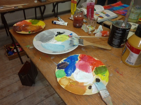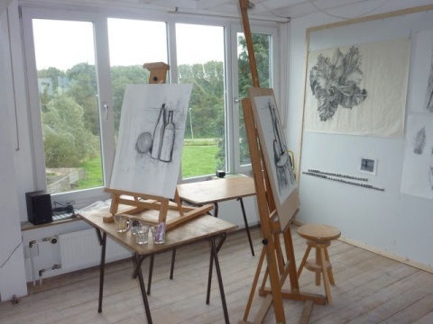 *Basisvaardigheden: Beeldaspecten als(rest)vorm, compositie, (altijd terugkerend en belangrijk) ruimtelijkheid, plasticiteit, lijnvoering leren onderzoeken en toe te passen. Hoe krijg je de juiste verhoudingen op papier? Hoe werk je met licht en schaduw? Kleurencirkel van Itten. Wat is er mogelijk met kleur in een schilderij? Hoe werkt perspectief en hoe krijg ik meer ruimte in mijn schilderij met kleur?,houtskool, potlood,pastel aquarel, acrylverf en olieverf technieken. Door de kleine groep is er altijd ruimte voor een individuele keuze van werken.
